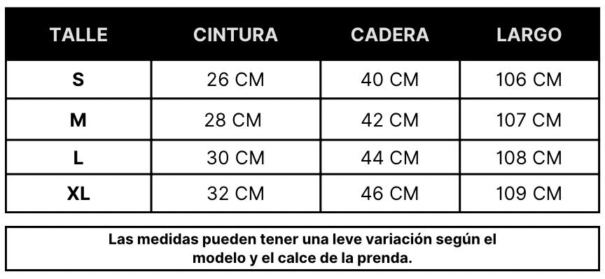(Las medidas están tomadas con la prenda apoyada sobre una superficie plana, sin estirar)